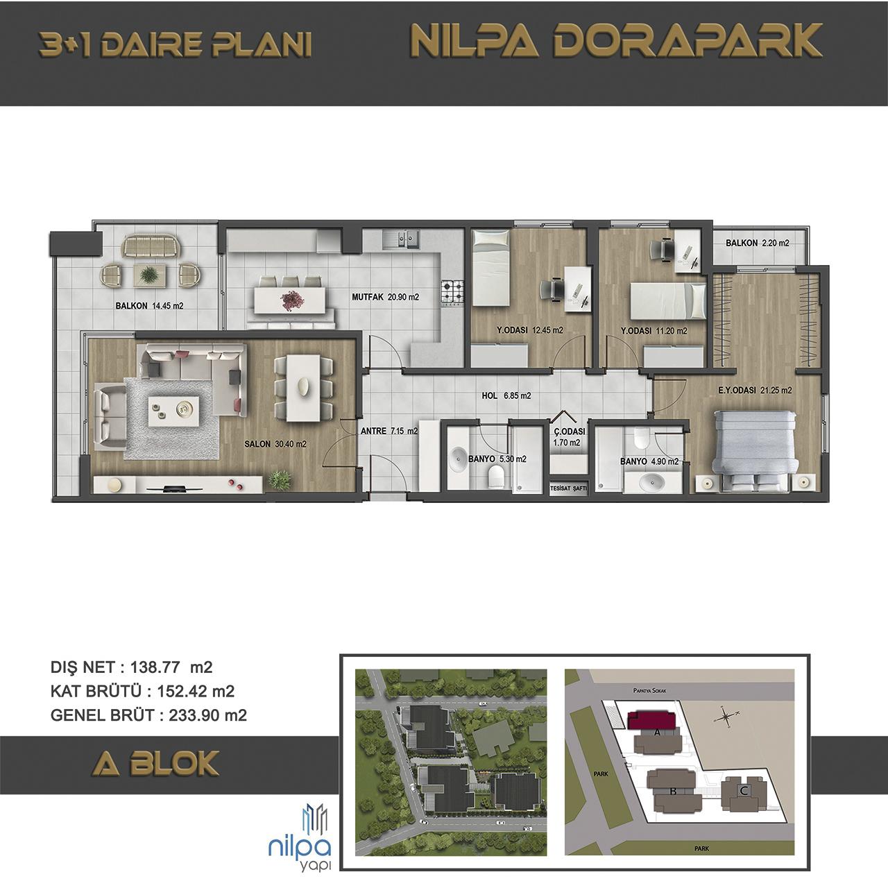 Bursa Nilüfer Bölgesinde Beşevler mahallesinde 1+1,2+1,3+1 ve 5+1 dublex olmak üzere toplam 33 daireden oluşan akıllı ev teknolojisi ile donatılmış projede kapalı otopark ,kapalı yüzme havuzu,fitness ve açık kapalı oyun alanları bulunmaktadır.