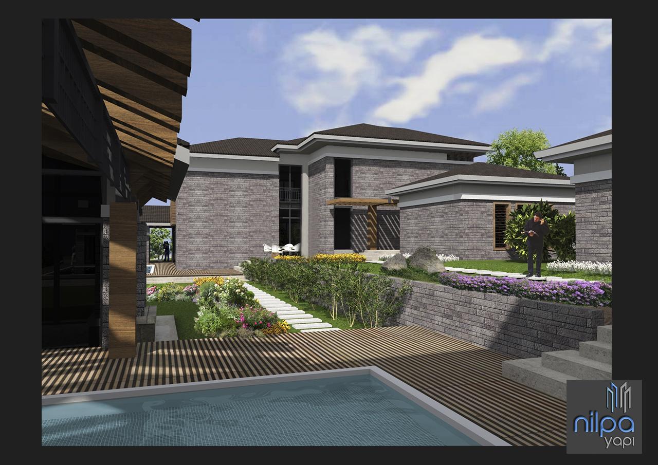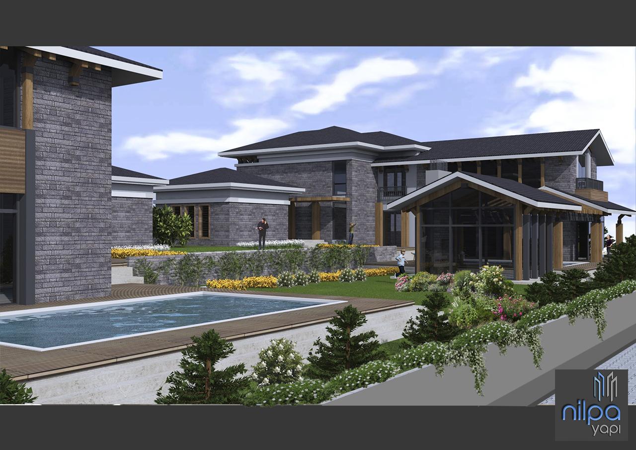 Bursa Özlüce`de 2120m2 arsa üzerinde iki adet olarak tasarlanmış yapı kitlesi arazi eğiminden çıkan bir bodrum ve iki kattan oluşmaktadır.Toplamda 1000m2 inşaat alanına sahip villalar Nilpa Yapı tarafından projelendirilmiştir.